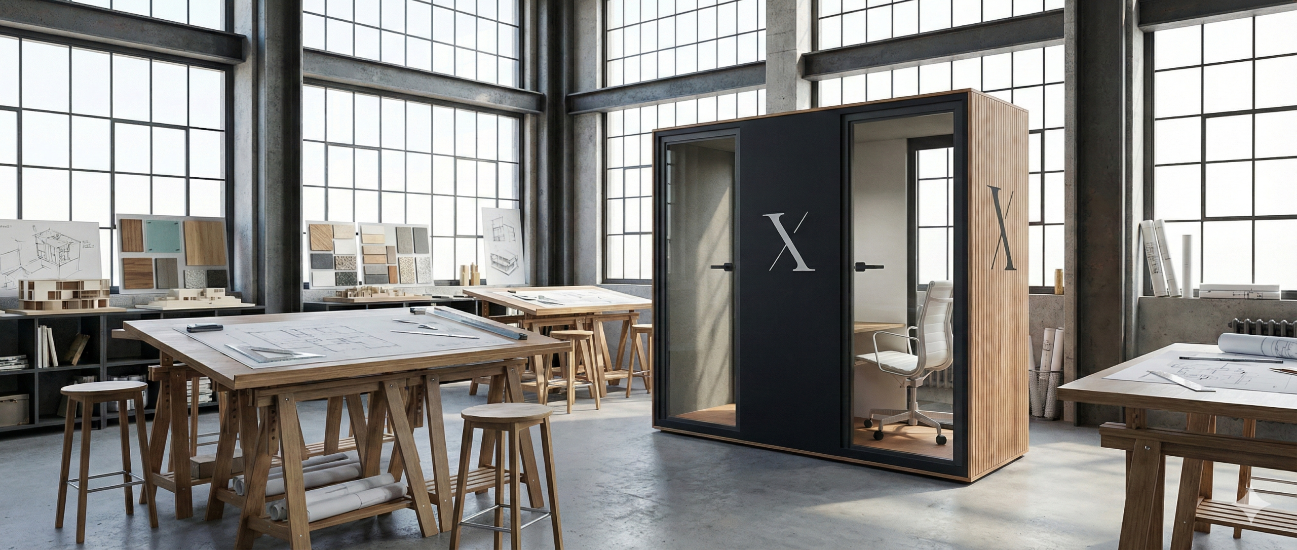 È la cabina acustica personalizzabile pensata per chi cerca comfort, isolamento e design senza rinunciare alla massima libertà progettuale.